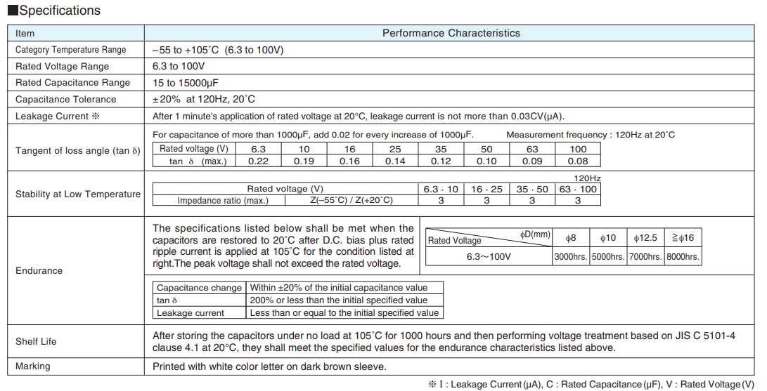 Leakage current, measured in microamperes (µA) or nanoamperes (nA), is the small amount of current that can flow through a capacitor when it's fully charged. Lower leakage currents are preferable in applications where energy efficiency is critical.