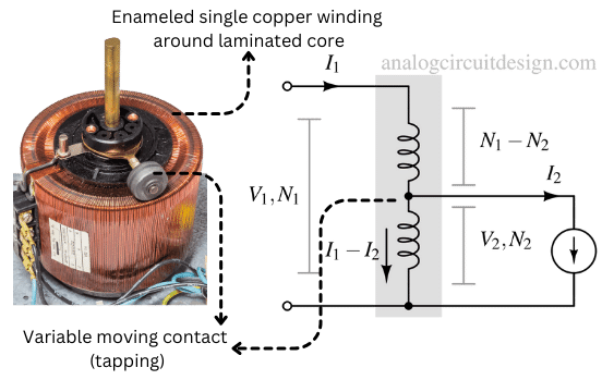 - Single Winding: Unlike a standard transformer, which has two separate windings for the primary and secondary coils, an auto-transformer has only one winding. This single winding serves both as the primary and secondary winding.